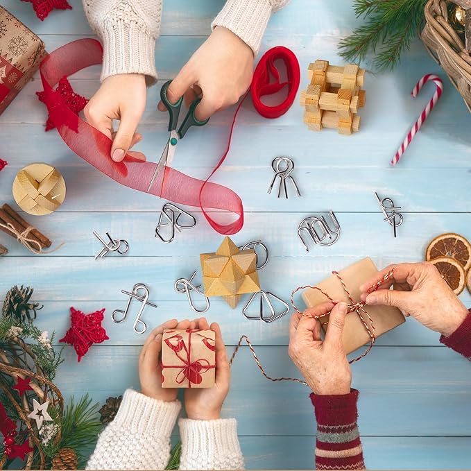 Brain Teaser Puzzles - 28 Pc Mind & IQ Puzzles, Wooden & Metal, 3D, Unlock Interlock, for Teens