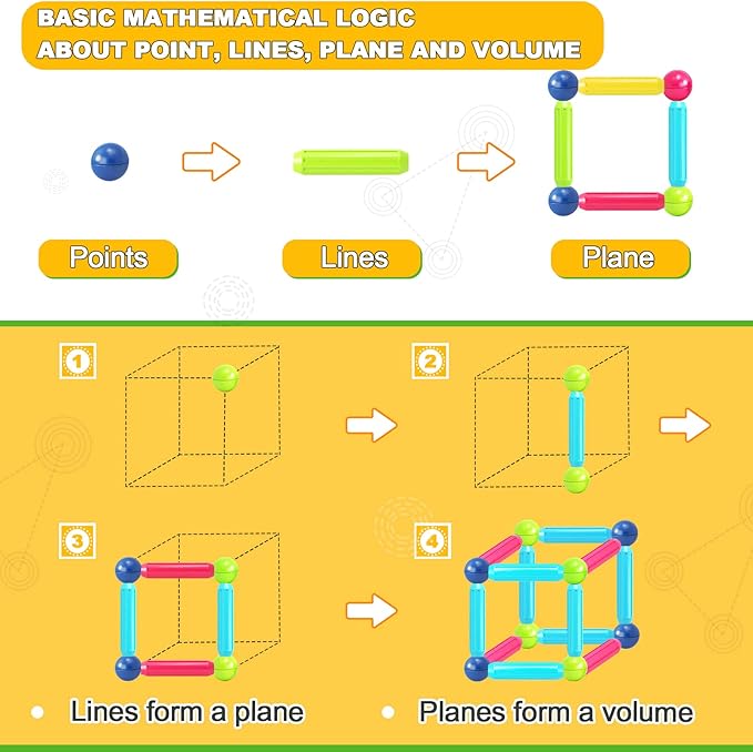 - 🎁【MAGNETIC TOYS FOR POINT & LINE TO PLANE】Looivo magnetic toy set consists of Balls and sticks is the same as the points and lines in geometry. Compared with other magnet toys, it is easier for beginners to understand 2D to 3D. And the magnetic combination of "click" together is easier for children to build and reduce learning anxiety. Highly recommended for toddlers and over 3 years old boys girls.