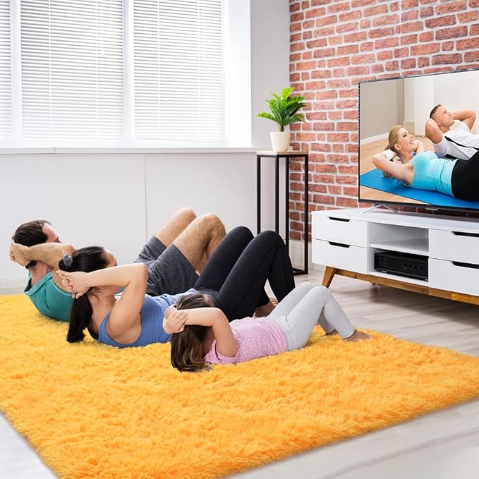 • Non-Slip Design: Thousands of long-lasting grip dots make sure this orange fluffy rug can hold stably on the floor; Protecting your floor to reducing noise and the teen, children can play happily at home