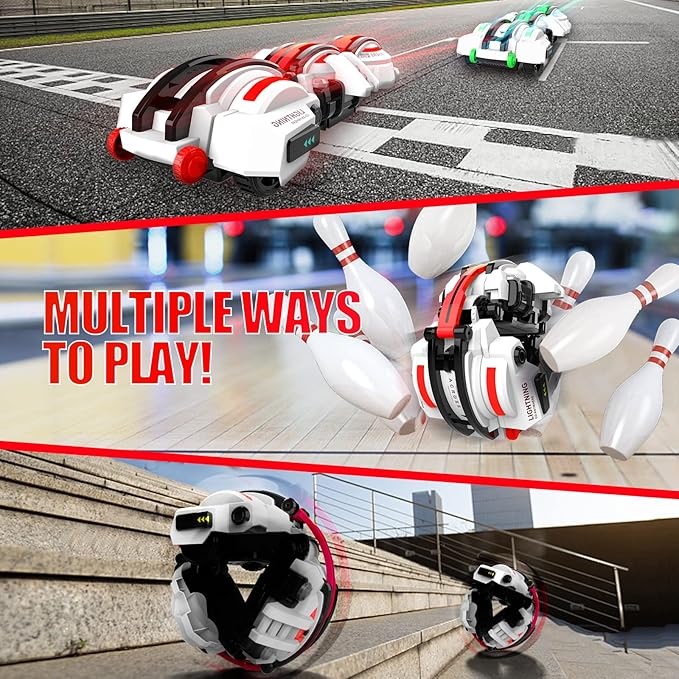 - 🚗【Unique Snakes Remote Control Car】This rc stunt car can TwirlSWITCHS and rotate 360 degrees very quickly, flip, and roll forward. ou can easily switchs from car to ball or from ball to car mode with 1 button on the remote control, and this rc car is good at flipping and spinning. RC car flipped over? No problem! You can restore it to its original state with 1 key! The unique shape and play style will surely make kids very excited and crazy! 【Note】: Can only drive on smooth ground, not on carpet/mud/grass/sand