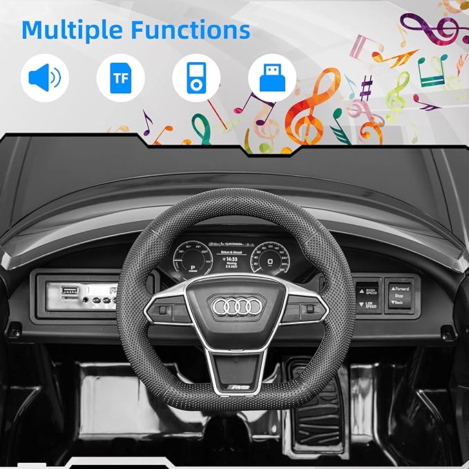 - Enjoyable Driving Experience: Kids can enjoy music and story on this audi car for kids through the USB, MP3 and TF card port. Built-in horn, forward/backward button also provide driving happiness.
