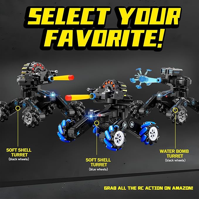 - ๐Crazy stunts and cool features: The stunt car have automatic demo function to show you more driving skills. RC tank that shoots car is very easy to assemble and disassemble,increase playability and Kid's DIY ability. With rich playbable functions- forward, backward, left and right with 360 rotation, lateral drifting, launching soft bullets, competitive mode, music led lights and lifting fort.It comes with a super cool LED light,music and a sprayer, bringing you a great visual experience.