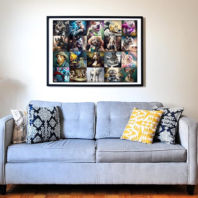 - 【Funny Dogs】 - This puzzle is perfect for dog lovers and puzzle enthusiasts alike, with its vibrant colors, high-quality pieces, and 20 adorable dog including Bulldog, Boxer, Corgi, German Shepherd, Poodle, Labrador, Smoyed, Shiba Inu, Collie, Boston Terrier, Chihuahua Golden Retrievers. These furry friends are in adorable outfits including Super Hero, Mona Lisa, Astronaut, Van Gogh, Police, Chef and Unicorn.