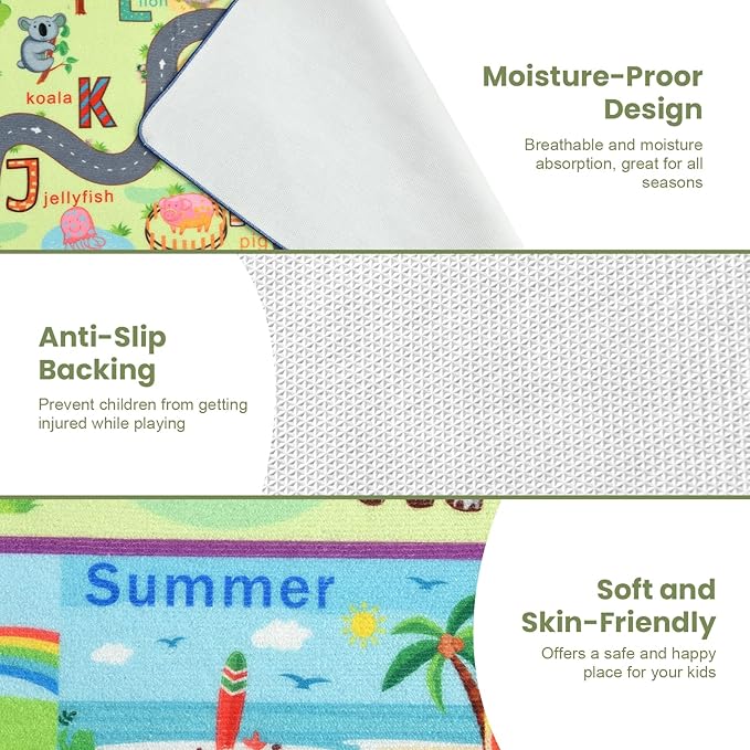 - Customer Satisfaction Guarantee - Your satisfaction is our top priority. If our product does not meet your expectations, please feel free to contact us through ""Contact Seller"". Please note that the play rug may have slight wrinkles and marks when unfolded due to folding packaging. Simply lay it flat for at least 12 hours to restore its original state.