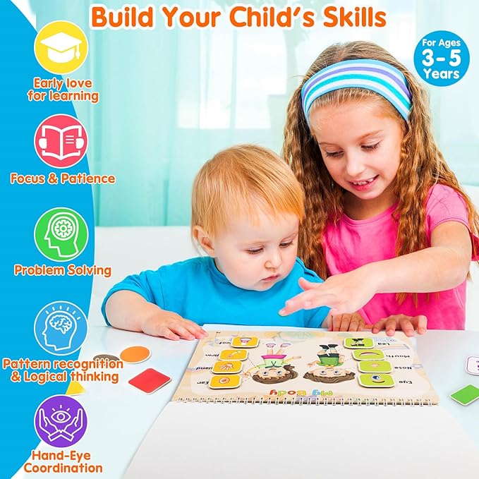• Pre-Assembled & Reusable Sticker Design.Forget tedious setup—our Montessori-inspired book comes pre-assembled with reusable sticker dots, saving you time while providing endless learning fun for 3-5 year old girls. Perfect for busy parents looking for an engaging educational toy.