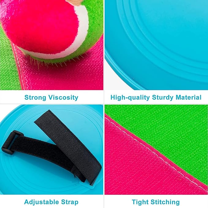 • Funny Outdoor Toys for Kids - Our beach toys for kids 3-10 include 4 balls and 4 paddles, and 1 storage bag. It is easy to play, one side throws the ball and the other catches the ball. This game can be played by 2-4 people, which is flexible and funny to bring both kids and adults together to play the game.