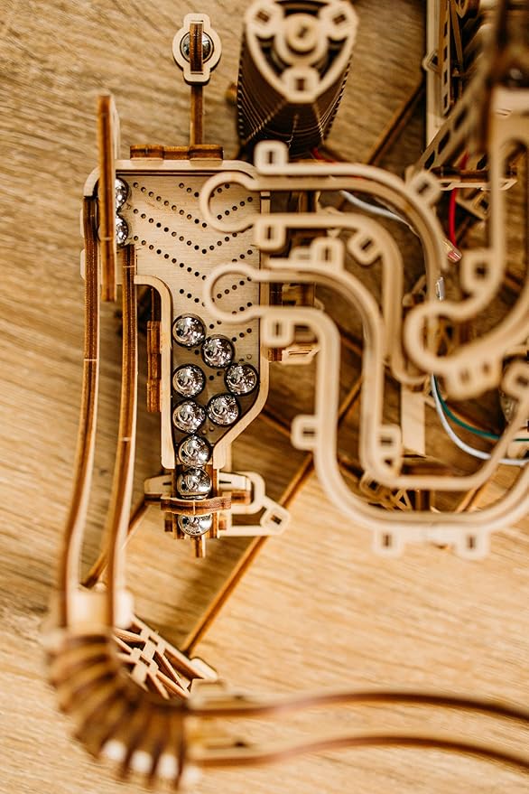- INTERACTIVE DESIGN - Developed by professional engineers, this 3D puzzle for adults is well-thought-out and will fascinate all DIY lovers. A special «paw» puts the marbles on the start, then they jump on the steps and are spread on three connected tracks. Assemble it and watch non-stop movement magic!