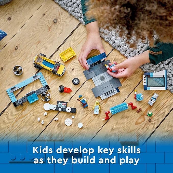 LEGO City Car Wash 60362 Building Toy Set, Fun Gift Idea for Kids Ages 6+, Features Spinnable Washer Brushes and Includes an Automobile and 2 Minifigures