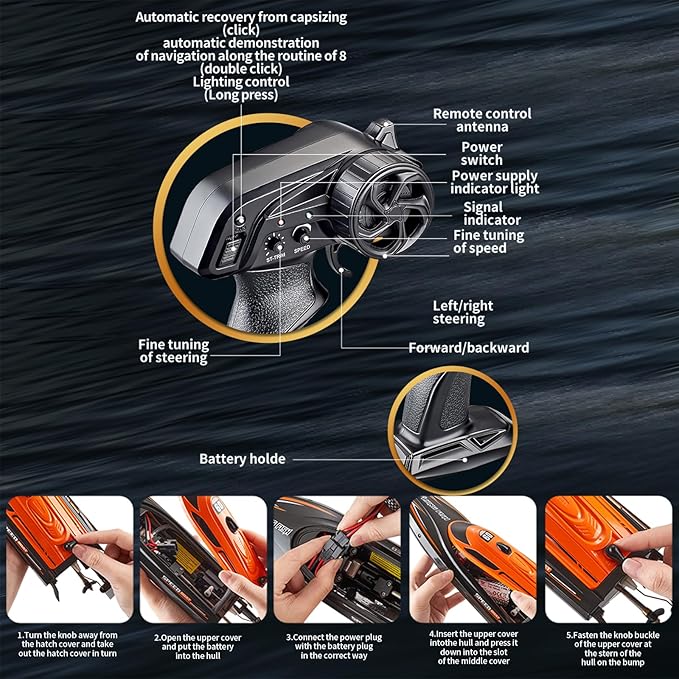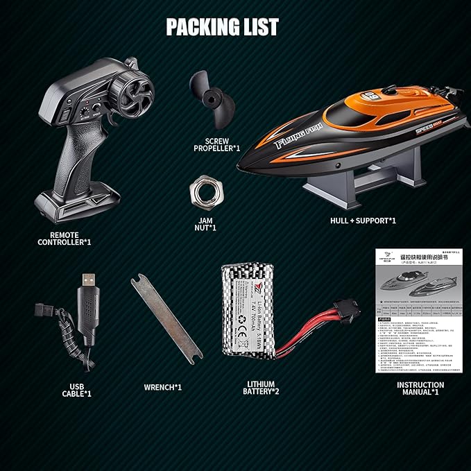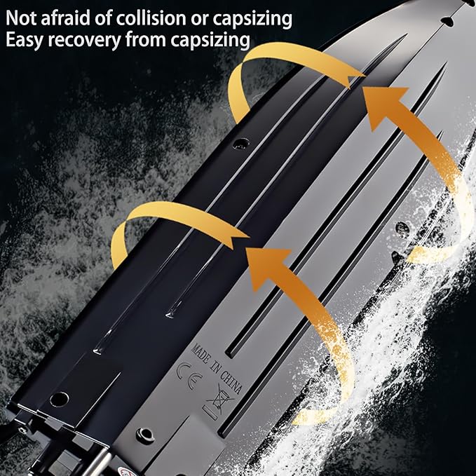 • 【High-speed RC boat】The RC boat has a cool appearance and scientific low resistance hull design, with a high-power motor, its travel speed is up to 20+ MPH or more, with 2 rechargeable long-lasting batteries to provide players with a more lasting entertainment and competitive experience.