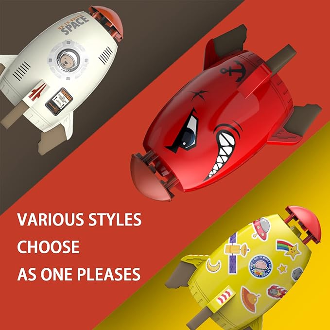 - 【DIY Rocket Sprinkler】Our rocket sprinkler has a very cute cartoon shape. The product comes with cartoon stickers, and you can freely paste cartoon patterns on the rocket according to the schematic diagram of the packaging box. Better exercise children's learning ability, but also can develop children's thinking.