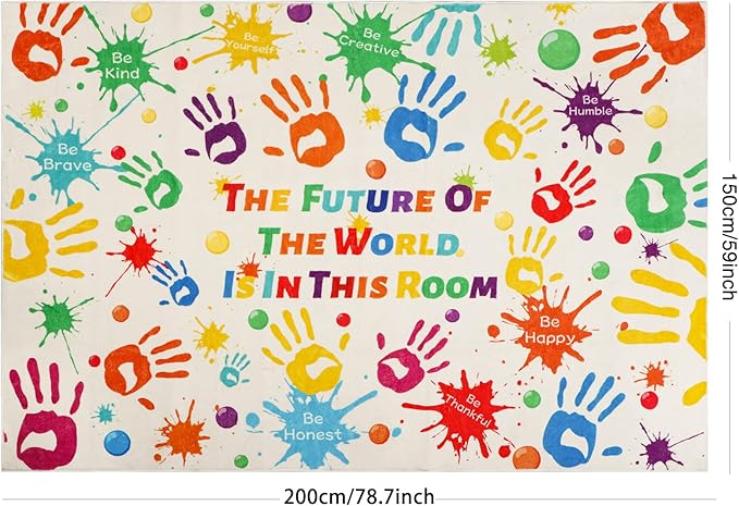 - Chic Design and Motivation: Our colorful kids rug combines inspirational quotes, including Be Kind, Be Brave, Be Honest, Be Happy, Be Humble, Be Thankful, Be Creative, etc., which are great to maintain a good mood for kids, help children's growth mindset and the vibrant colors will transform the boring floor into beautiful scenery so you can be ready to liven up any room environment.