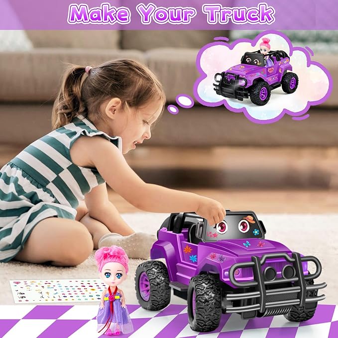 Remote Control Car, Purple Rc Truck with DIY Stickers and Doll for Girls Toddlers, 1:20 Scale RC Truck All Terrain Trucks, Rc Car Toys Gift for Kids Age 3 4 5 6-12 Birthday Gift
