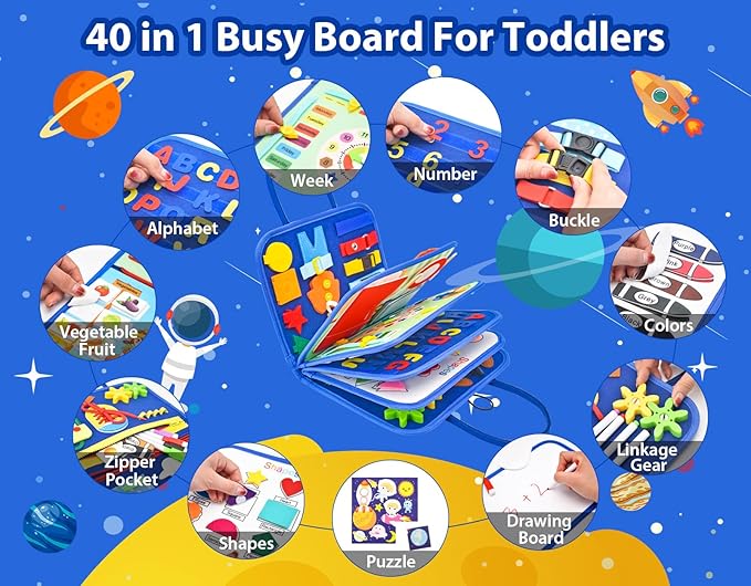 - Cost-Effective Learning Sensory Toy:Montessori busy board for toddlers 1+ is a practical educational sensory toy, whether indoors or outdoors to engage in sensory activities.It not only keeps children busy, but also reduces their screen time.In addition to some common benefits, such as improved hand-eye coordination, fine motor skill refinement and basic knowledge learning, it can also develop logical thinking skills. Montessori busy book can also boost children's confidence by solving problems in play