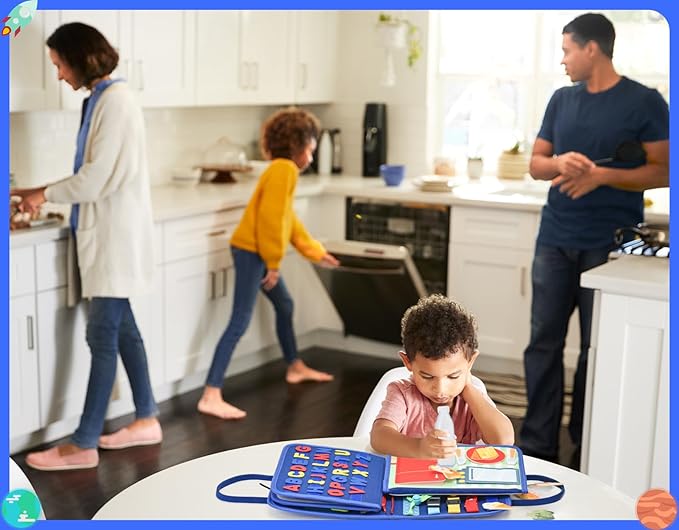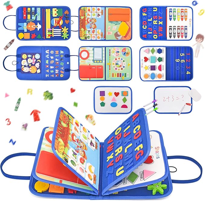 - Preschool Educational Toy:Toddler sensory toys is also the medium between adults and kids,kids learn basic knowledge and skills while interact with family.The children's new daily busy activities include farming, dressing, getting ready for bed, eating, heating food, or identifying and sorting fruits and vegetables.Simple counting,shapes,colors and letters learning is the beginning for preschool kids, the unique DIY model allows the child's imagination and creativity to flourish