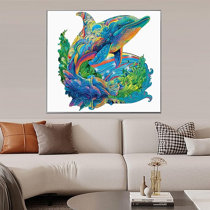 Wooden Puzzles, Dolphin Jigsaw Puzzles 200 Pieces, Unique Shaped Wooden Puzzles for Adults and Kids, Family Game 11.4x11 Inch