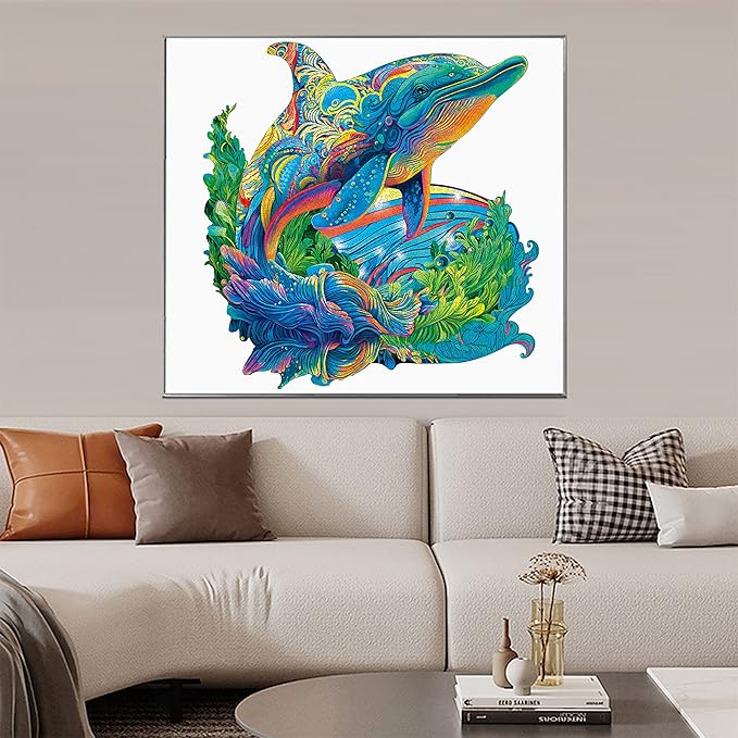 Wooden Puzzles, Dolphin Jigsaw Puzzles 900 Pieces, Unique Shaped Wooden Puzzles for Adults and Kids, Family Game 23.3x22.5 Inch