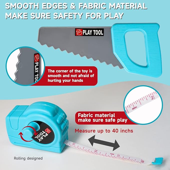 - All the toddler tools items come packed in a kids tool box for easy storage and carry. A good way to cultivate the habit of kids to store and sort out their own things from childhood. Comes with a handle that can easily carry it anywhere, fix things anytime they want.