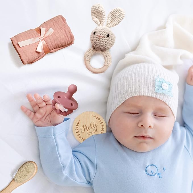 • [Gift Box for Parents]: Montessori gift sets include a baby blanket, baby brush, baby teether, handmade rattle, wooden milestone cards, drool towel, pacifier bag. These can completely meet the needs of the baby from birth to toddler.