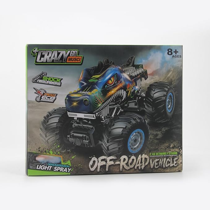 - 【Remote Control Car Monster with Tail Spray, Music and LED Lights】This distinctive RC Dinosaurs Monster Truck features stylish music, rhythmic lights, and a more realistic tail spray. Various features are combined in a RC car, making it the most interesting gift for children.