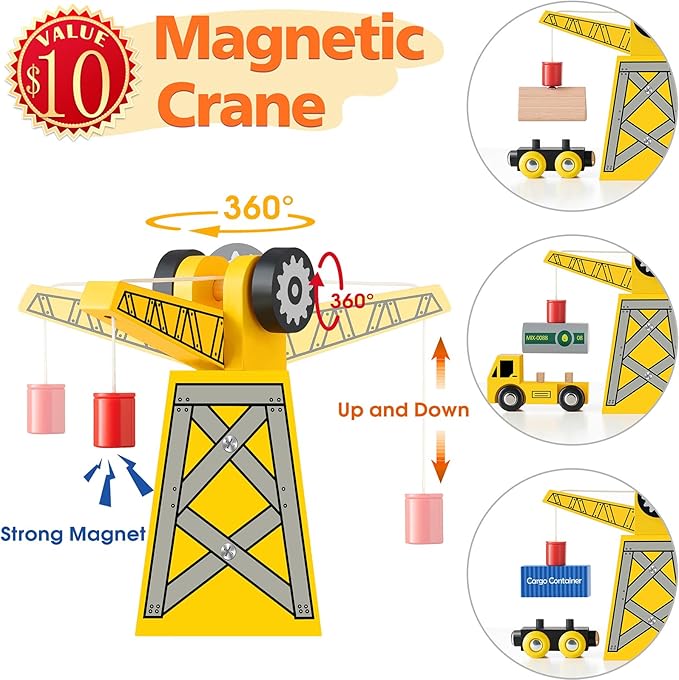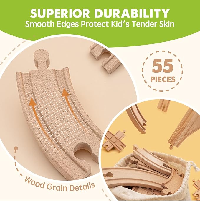 - Premium Wood, Built to Last: Made from high-quality, durable wood and finely polished for safety, this train set is crafted to withstand years of enthusiastic play.