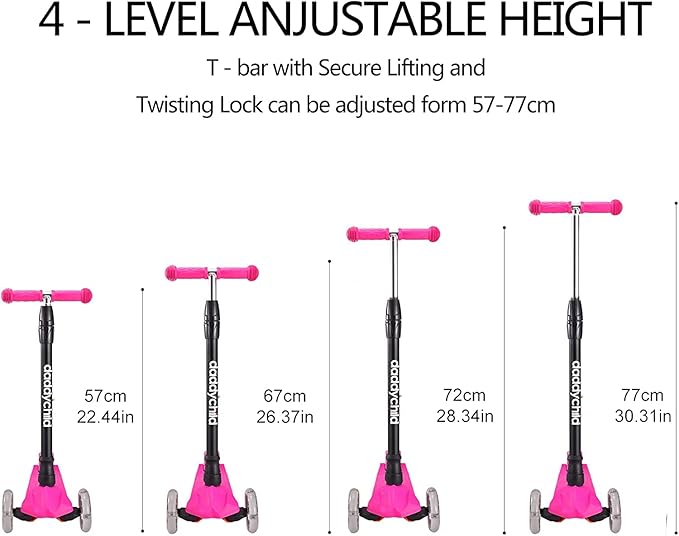 - EXCITING GLOWING WHEELS: The 3 wheels are equipped with powerful LEDs, igniting a brilliant glow, captivating the young riders with its enchanting charm. Safety is never compromised, as the scooter becomes a captivating spectacle even in the dark, providing peace of mind for parents.