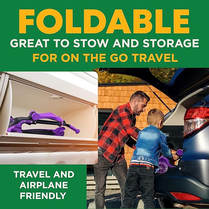 - BUILT-IN LED LIGHTS: Our scooter features multicolored LED wheels that illuminate when rolling. Suitable for indoor and outdoor use, our 3-wheel scooter is lightweight and compact, perfect for taking to the park, on vacation, and for playing in the garden.
