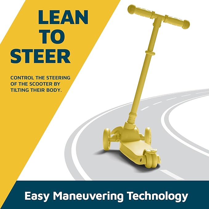 - BUILT-IN LED LIGHTS: Our toy scooter features multicolored LED wheel lights that activate while rolling, enhancing fun and safety. Ideal for indoor and outdoor use, this lightweight, compact scooter promotes balance and coordination.