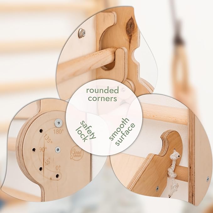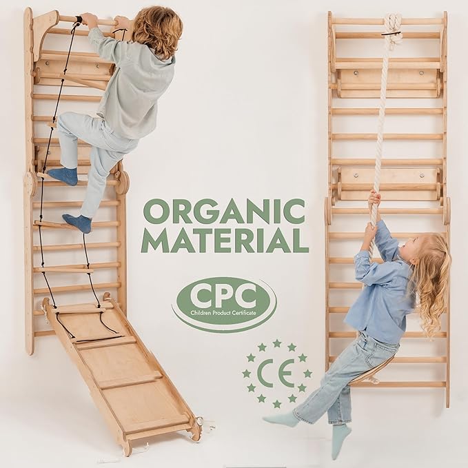 • Adjustable Swedish Ladder: Designed with Montessori principles, the adjustable “Swedish ladder” features 5 height levels, growing with your child and suiting children from toddler years to pre-teens