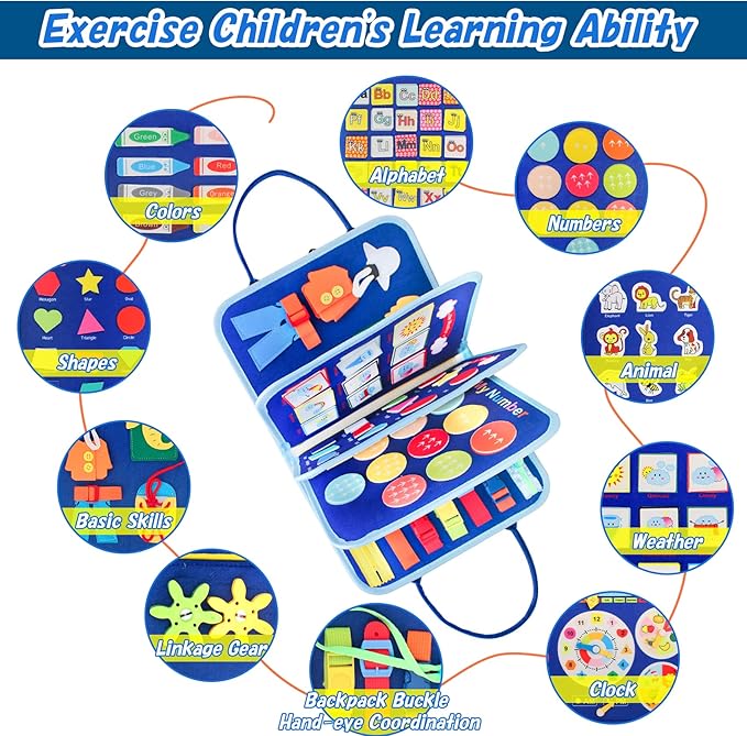 - AMAZING WAY TO KEEP A BABY BUSY: iooo busy board is a lifesaver on planes, road trips, doctor’s appointments, and at restaurants! Sensory toys great for on-the-go and such a great way to keep a child engaged without technology,it's also great learning & education toys. A real quiet book for your kids and kids will lovey set of activities.