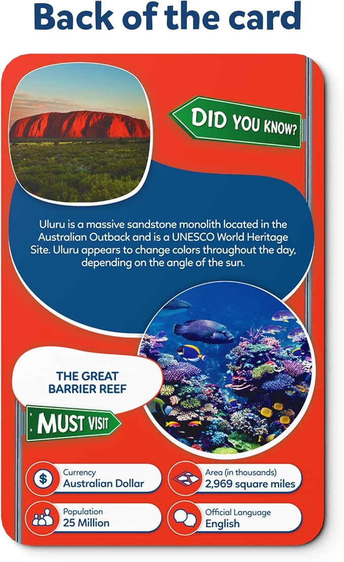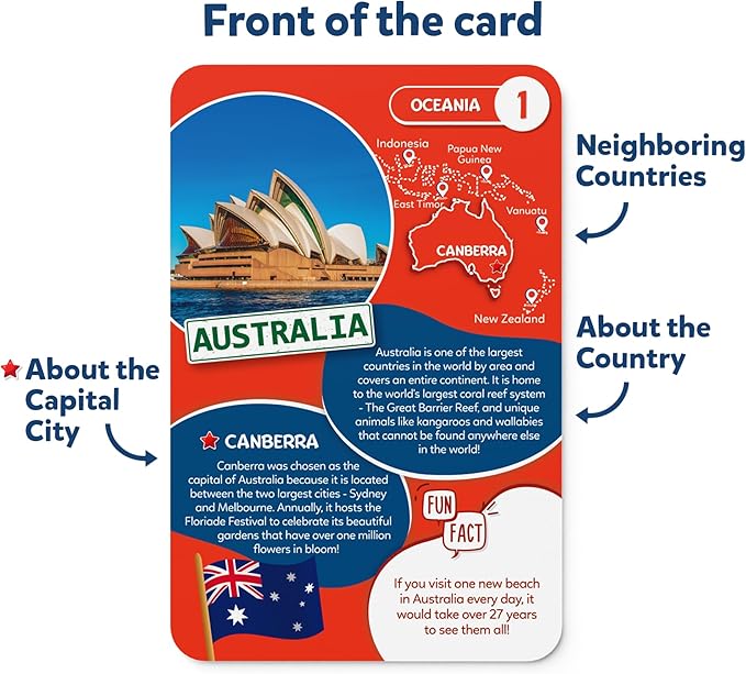 - 400+ FUN FACTS: The country cards offer an entertaining and educational experience with fun facts about 100 countries of the world and their capitals, stimulating a child's curiosity about the world around them.