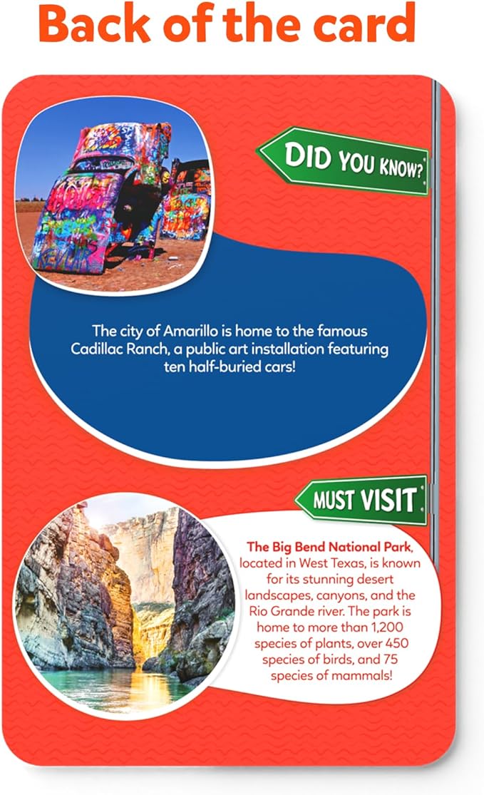 • 250+ FUN FACTS: The state cards offer an entertaining and educational experience with fun facts about the States of America, including their capitals, landmarks, and interesting cultural and historical facts. This can stimulate a child's curiosity about their country and its diversity.