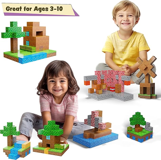 - 【Explore a Magnetic World Adventure】 Unleash boundless creativity with 100PCS magnetic building blocks designed around a vibrant grassland theme. From flowing water to castles, trees, flowers, brick, sand, TNT, Blossoms, stone. kids can design entire natural scenes or fantastical structures and landscapes. This open-ended stacking playset turns every build into a storytelling journey full of imagination and wonder.