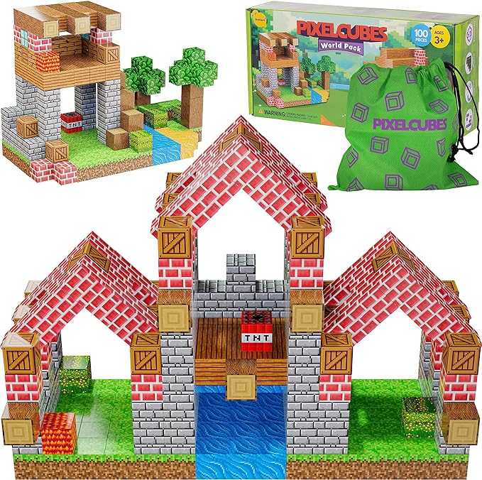 100PCS Magnetic Pixel Cubes World Pack STEM Building Blocks for Kids Montessori Educational Toys Fidget Sensory Set Construction Stacking Toy for Kids 3+ Boys and Girls Christmas Birthday Gifts