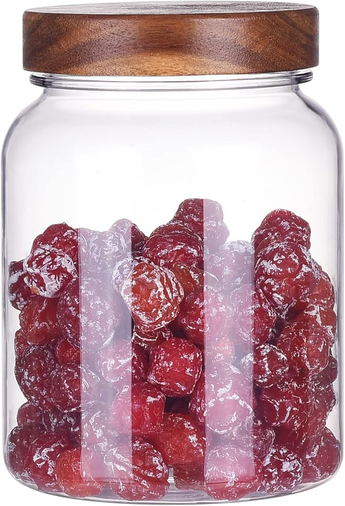 42 Fluid Ounces Unbreakable & Dishwasher Safe Plastic Apothecary Jar with Wooden Airtight Screw Top Lid, Food Storage Canister for Sugar, Tea, Spices, Coffee, Cookie, Candy Containers
