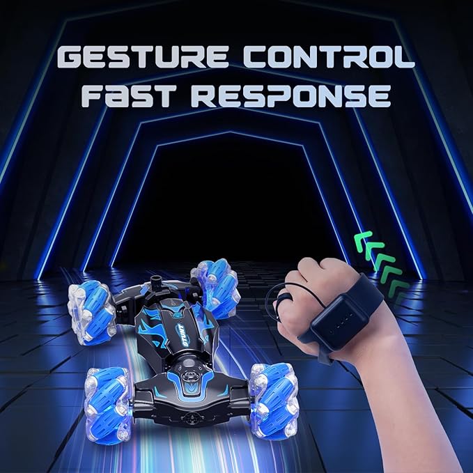 - Sensitive Gesture Control - You can wear remote control watch to drive the gesture sensing RC stunt car. This hand controlled RC car will perform stunts according to your gesture. It's a sensitive gesture RC car.