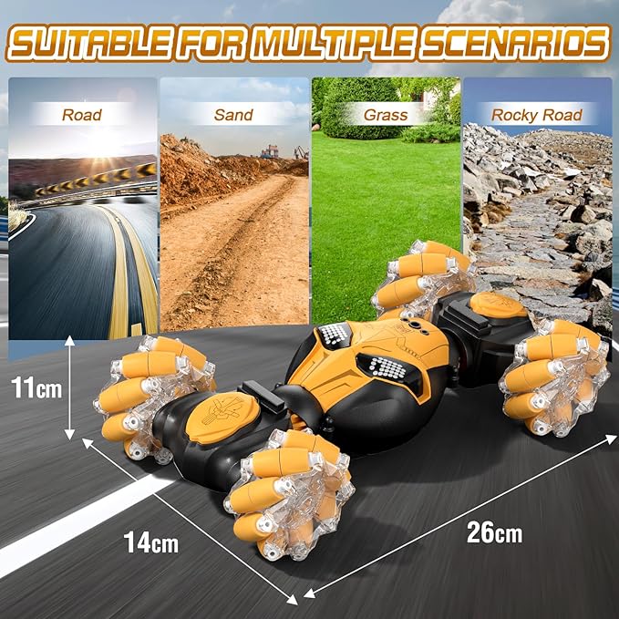 Axirata Gesture Sensing RC Stunt Car with Lights & Music for Kids 6-12 Year Old 4WD 2.4GHz Hand Controlled Remote Control Car 360° Rotation Off-Road Toy Car Gift for Boys Girls(Yellow)