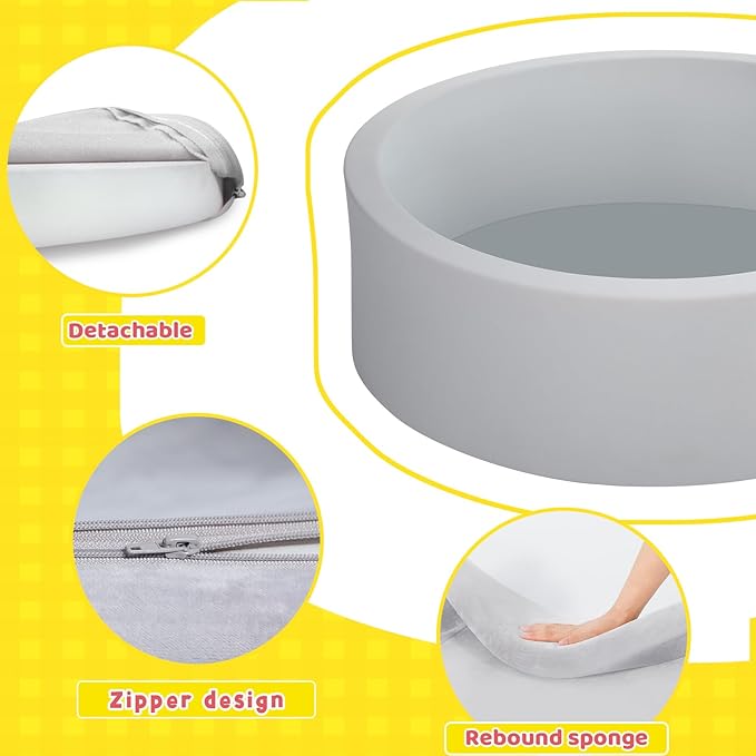 - ★Safe for Children★: The ball pit is made of safe and high quality soft memory foam, highly elastic, soft and not easily deformed. The bottom and walls of the ball pits for toddlers are thick enough to protect toddlers from impact. The baby ball pit provides a safe and comfortable place for children to play.