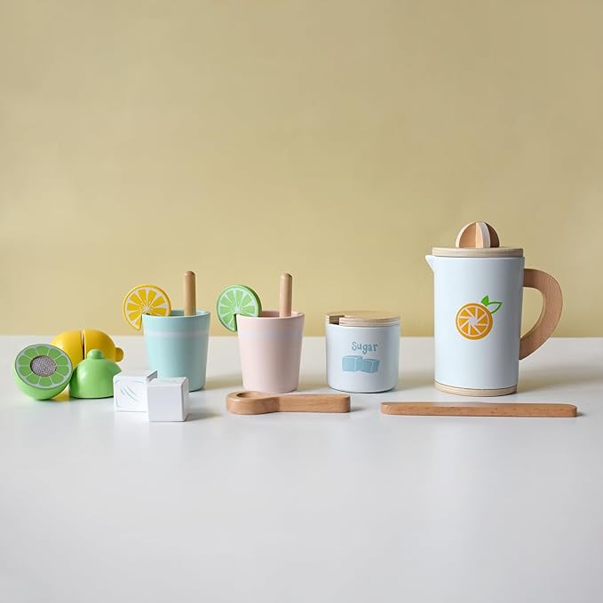 PairPear Wooden Toys Lemonade Playset,Kids Play Food Pretend Play Lemonade Stand Kit,Play Kitchen Grocery Maket Acessories Gift for Toddler Girls and Boys 3 Years+