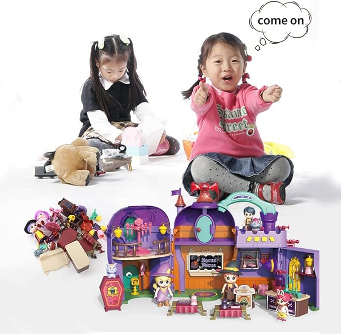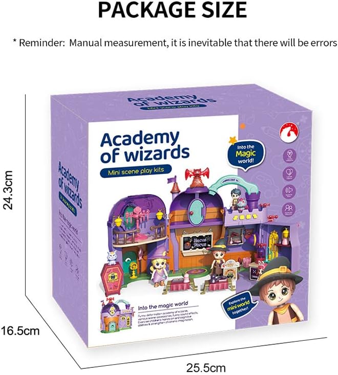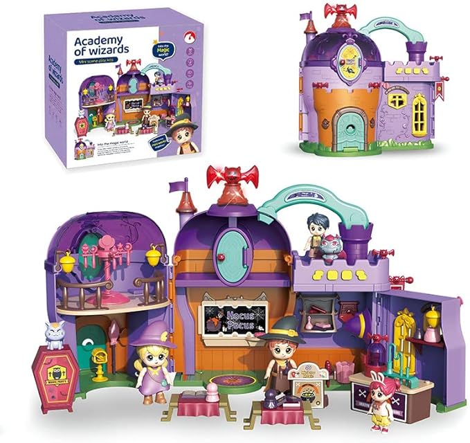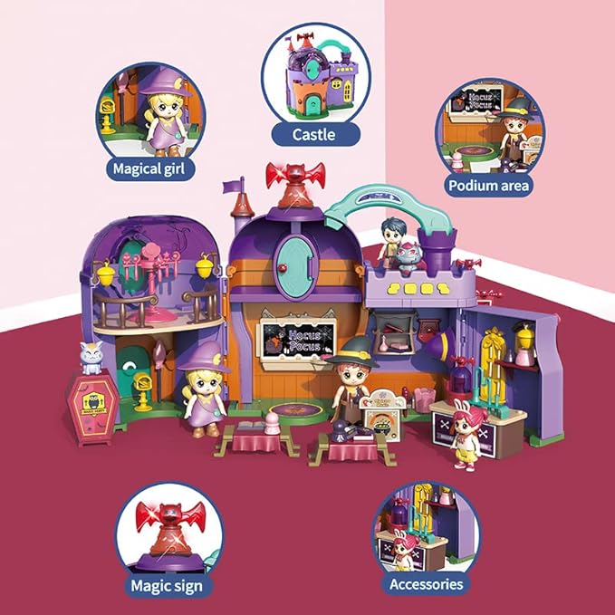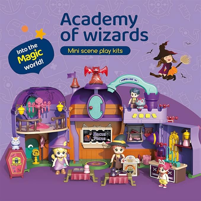 • Magic Element Features: The theme of this mini doll house is the School of Magic, equipped with many charming magic elements, such as the magical shapes of small dolls and pets, allowing children to immerse themselves in the world of magic and use their imagination to create their own stories and scenes.
