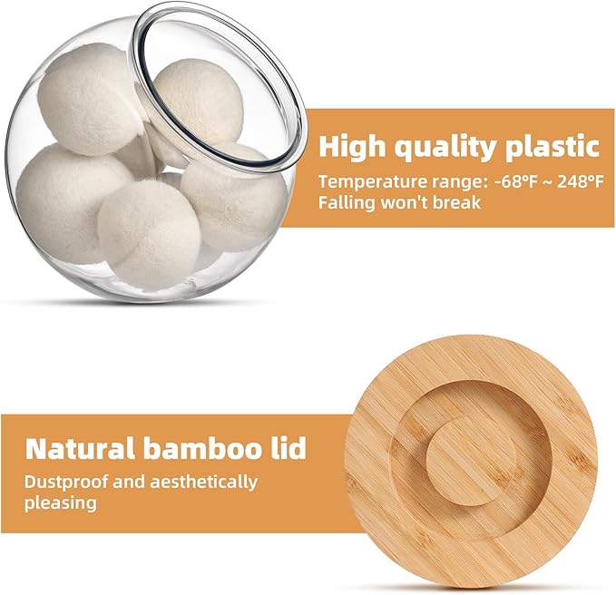 • 【Multiple uses】: In addition to wool balls, it can also hold laundry pods, clothes clips,candy,cookie,etc.