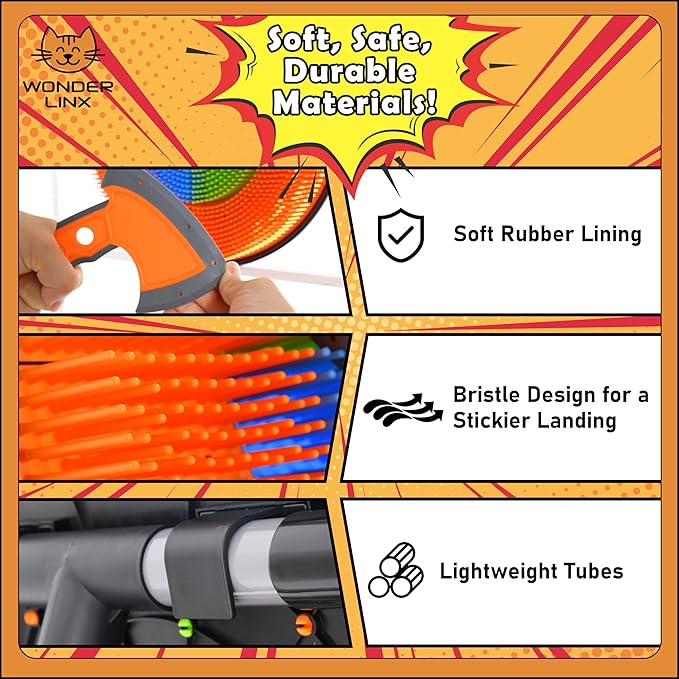 • VIBRANT COLORS - Step into a world of high-energy play with this dart game set's eye-catching colors, vibrant orange, green, blue, & grey, not only do they enhance the aesthetics but also draw attention.