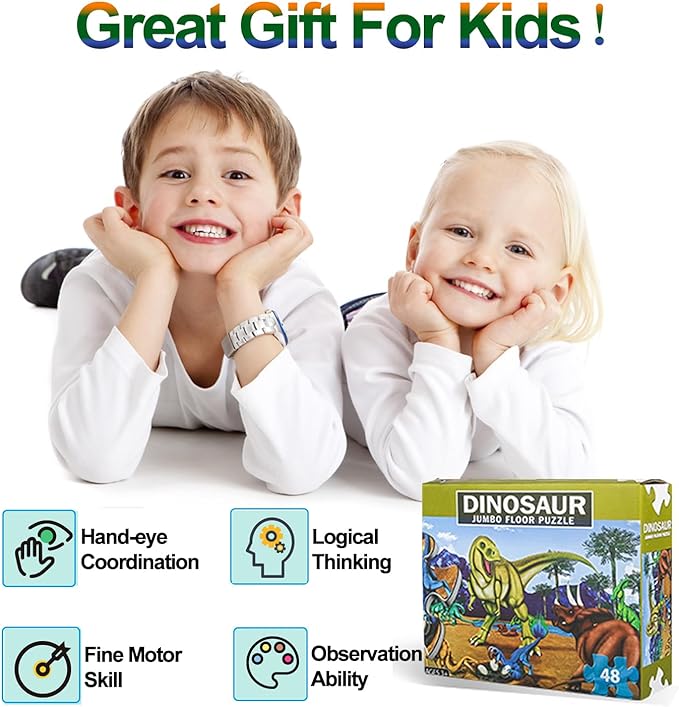 • 【Perfect Gift】This perfect large dinosaur puzzle will bring hours of fun to your children. It is nice to spend time with your girls and boys playing puzzles, while having fun family time. Great gifts for 3 4 5 6 7 8 year old boys & girls when birthdays or festivals come.