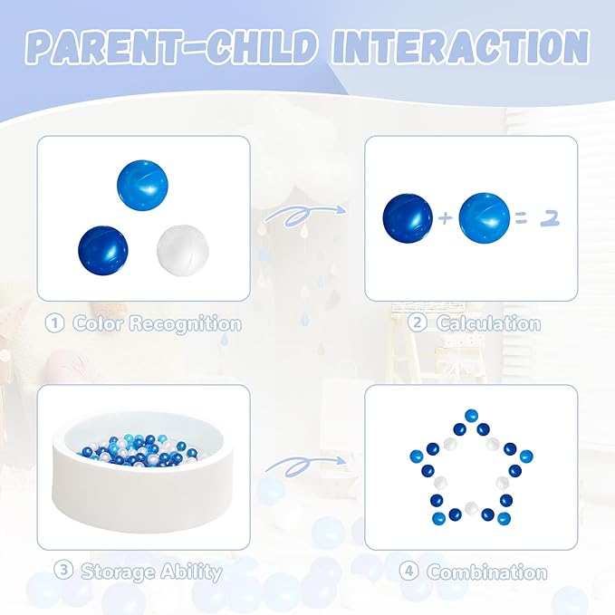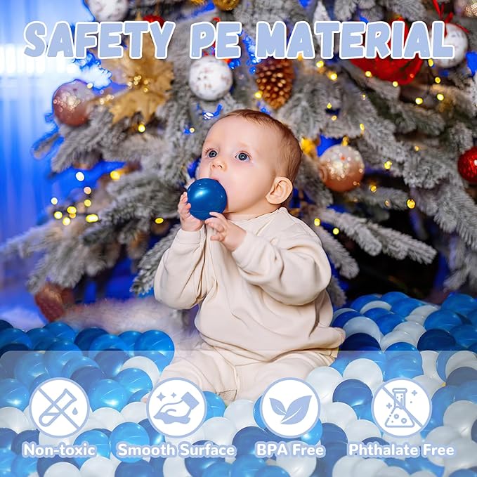 • Perfect Size: The ball pit balls is 2.16 inches in diameter, perfect for baby's little hands; kids can easily hold pit balls with one hand and won't be a choking hazard; ball pit balls 200 can cover the bottom of a 35.4 inches ball pit, and it is recommended to choose more than 2 packs
