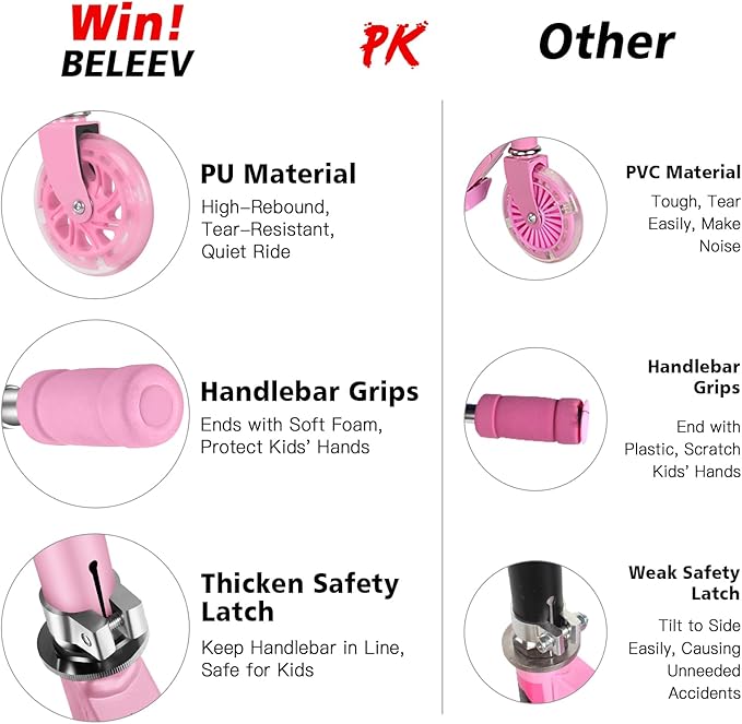 - Light up Your Ride: The kids scooter features 2 led flashing light up wheels, no batteries needed. Lights get brighter with the faster your kids go with our Magnetic Core Wheels. You'll love this special feature, making your scooter unique!