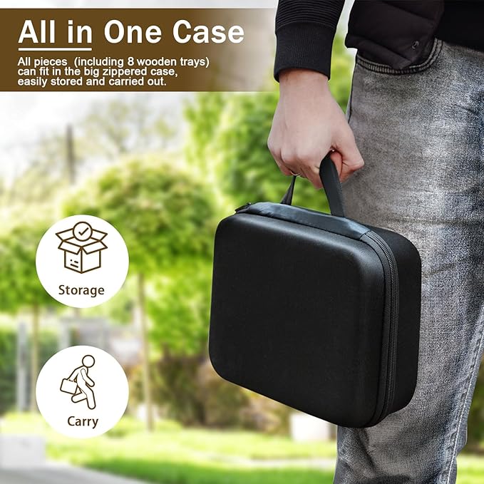 • All in One Case: All pieces (including 8 wooden trays) can fit in the zippered case, easily stored and carried out. The complete set includes: 91 tiles + 8 wooden trays + 1 portable case + 9 colorful trains + 1 instruction + 1 score pad + 1 hub.