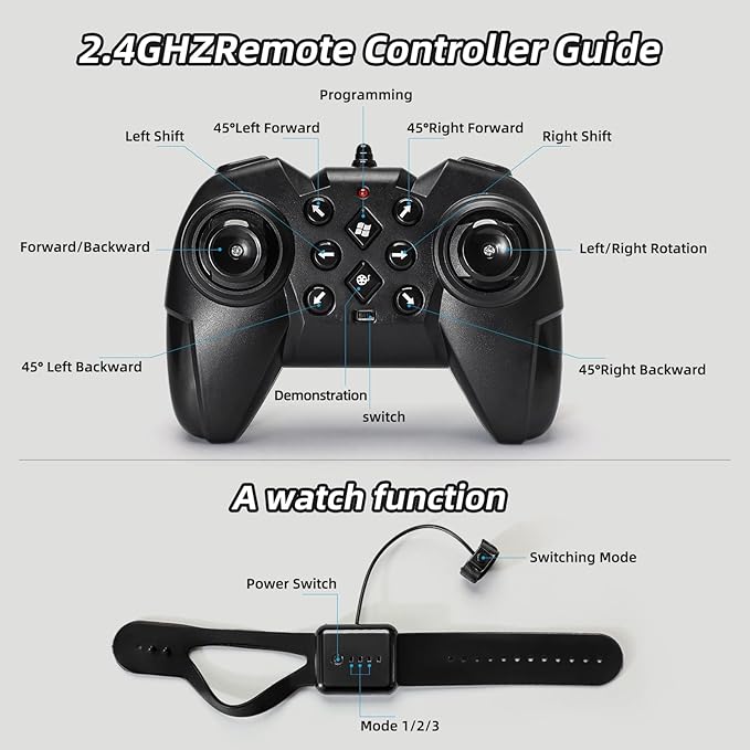 • 【Multiple Ways to Play】The remote control adopts 2.4GHz transmission technology, which is sensitive to control and ultra-long-distance control. Yet another amazing remote control watch. Wear the watch on your hand, tilt the angle <90°, the gesture remote control car can sensitively sense your posture changes, and drive and change at will.