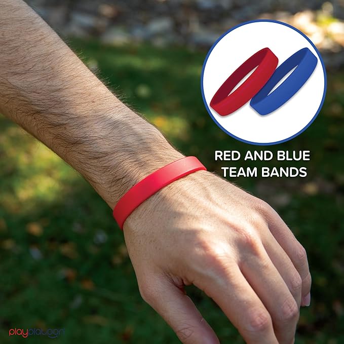 • EASY SETUP: Simply put on the wrist bands, set up each team's flag zone with their flag and red and blue cones, place the yellow cones as out of bounds markers, and you’re ready! A great way to enjoy hours of outdoor fun, fostering teamwork, strategy, and physical activity.