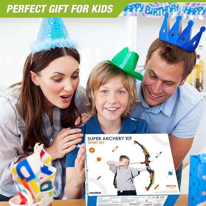 - [Great for Indoor and Outdoor Activities] -HYES bow and arrow toy is easy to carry and has adjustable quiver strap for kids of all ages. Kids bow and arrow set is an ideal gift for kids 4-12 years old on Birthday, Thanksgiving, Christmas and other holidays.