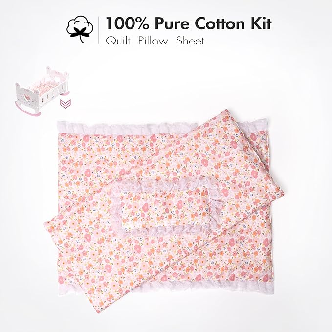 • ADORABLE DESIGN: The enchanting design brings a sprinkle of sweetness to every playroom. This doll bed, not only a functional accessory, but also a delightful décor piece, transforms playtime into a magical experience—an exciting gift to nurture your child's imagination.