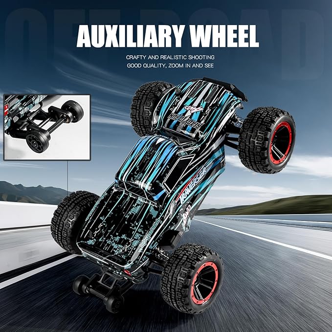 - 【RC trucks 4x4 off road waterproof 】Full proportional 2.4GHz radio controlled system performs with no signal interference. IPX4 waterproof electronics feature anti-block, overcurrent , and low voltage cutoff protection. It will cast a spell on users at different ages, a perfect remote control car for boys and adults